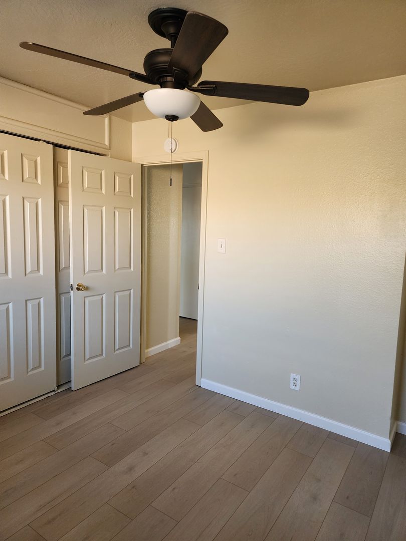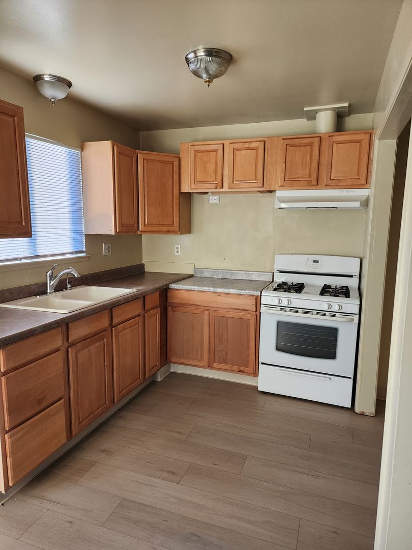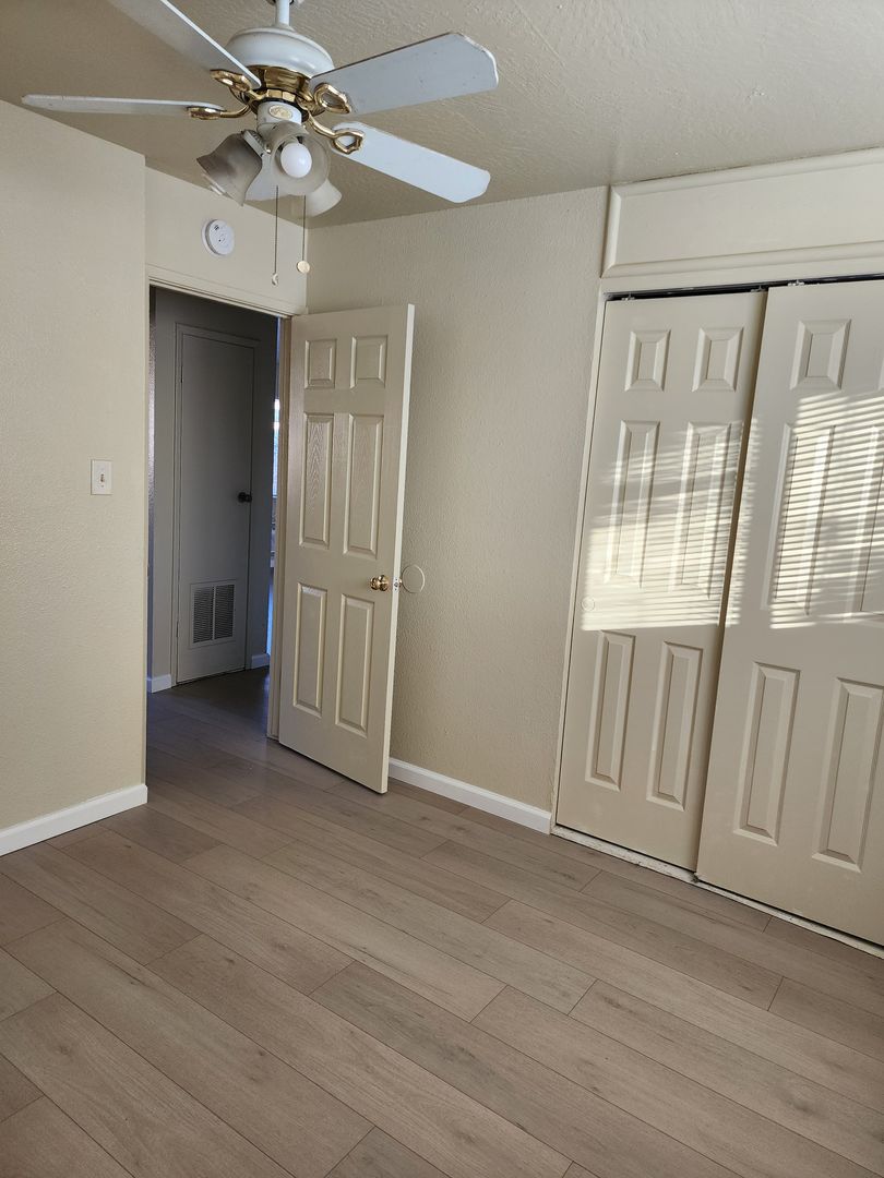 2 Bedroom 1 Bath with Washer and Dryer Hook-ups inside, Freshly painted throughout, New Blinds and Vertical Throughout, New LVP Wood Plank Floors throughout. Newer Kitchen and Bathroom cabinets and countertops, Newer sinks\ faucets, Tub\ shower has been refinished, 6 Panel doors, Ceiling fans, New Baseboards, Large Back yard, 1 assigned Parking stall with Storage area, Owner pays Water\ Sewer\ Garbage and Landscape for the common areas and front. Tenant responsible for back yard care. Wall Heat\AC, NO Pets, Close to Shopping, School, and Bus stop